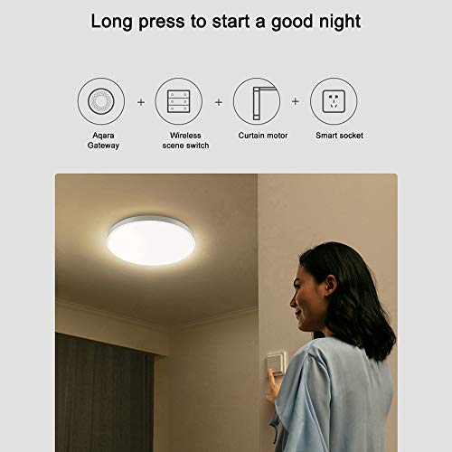 【Con puerta de enlace, enlace inteligente】: Para realizar una vida inteligente, ¡debes combinar la puerta de enlace de para Aqara! Por ejemplo: puerta de enlace + interruptor de escena inalámbrico + interruptor de pared + toma inteligente, haga doble clic en el interruptor de escena inalámbrico cuando vaya a trabajar para apagar todas las luces, ventiladores y otros electrodomésticos en el hogar.