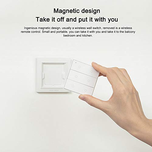 【Diseño magnético】: El diseño magnético inteligente suele ser un interruptor de pared inalámbrico, que es un control remoto inalámbrico cuando se retira. Es compacto y portátil y se puede colocar con usted. Puedes llevarlo al balcón, dormitorio, cocina. Como el ambiente interior es diferente, se recomienda que la distancia de comunicación sea inferior a 20 metros, y no más de dos paredes en el medio, el efecto es el mejor.