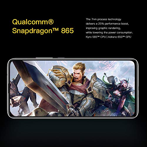 LiquidCool Tecnología & Snapdragon 865 Procesador : La tecnología de proceso de 7 nm ofrece un aumento del rendimiento del 25%, mejora la representación gráfica y reduce el consumo de energía. La tecnología LiquidCool 2.0 con un proceso de enfriamiento líquido de múltiples capas y una de las cámaras de vapor más grandes de la industria que cubre el 28% del cuerpo, la temperatura de la CPU se puede reducir en 14°C