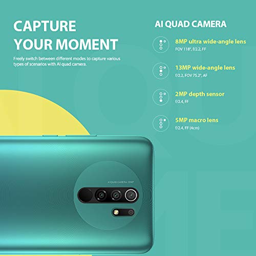 Apariencia : Xiaomi Redmi 9 móvil teléfono con 6.53″ con certificación de luz azul, puede pasar cómodamente largas horas en su teléfono sin fatiga visual. La parte posterior presenta un diseño texturizado que evita las huellas dactilares y mantiene el dispositivo como nuevo en todo momento.