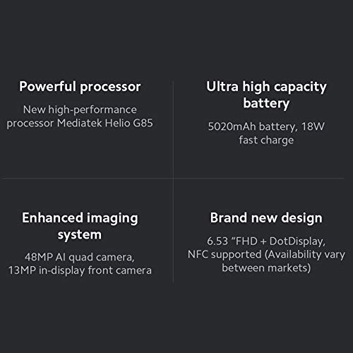 El Xiaomi Redmi Note 9 es un smartphone Android con una pantalla Full HD+ de 6.53 pulgadas y potenciado por un procesador Mediatek Helio G85, acompañado de variantes de 3GB de memoria RAM con 64GB de espacio de almacenamiento interno o 4GB de RAM con 128GB de almacenamiento. La cámara trasera del Redmi Note 9 es cuádruple, de 48 MP + 8 MP + 2 MP + 2 MP, mientras que su cámara frontal es de 13 MP. El Redmi Note 9 completa sus características con una batería de 5020 mAh de carga rápida, lector de huellas posterior, y MIUI 11 basado en Android 10.